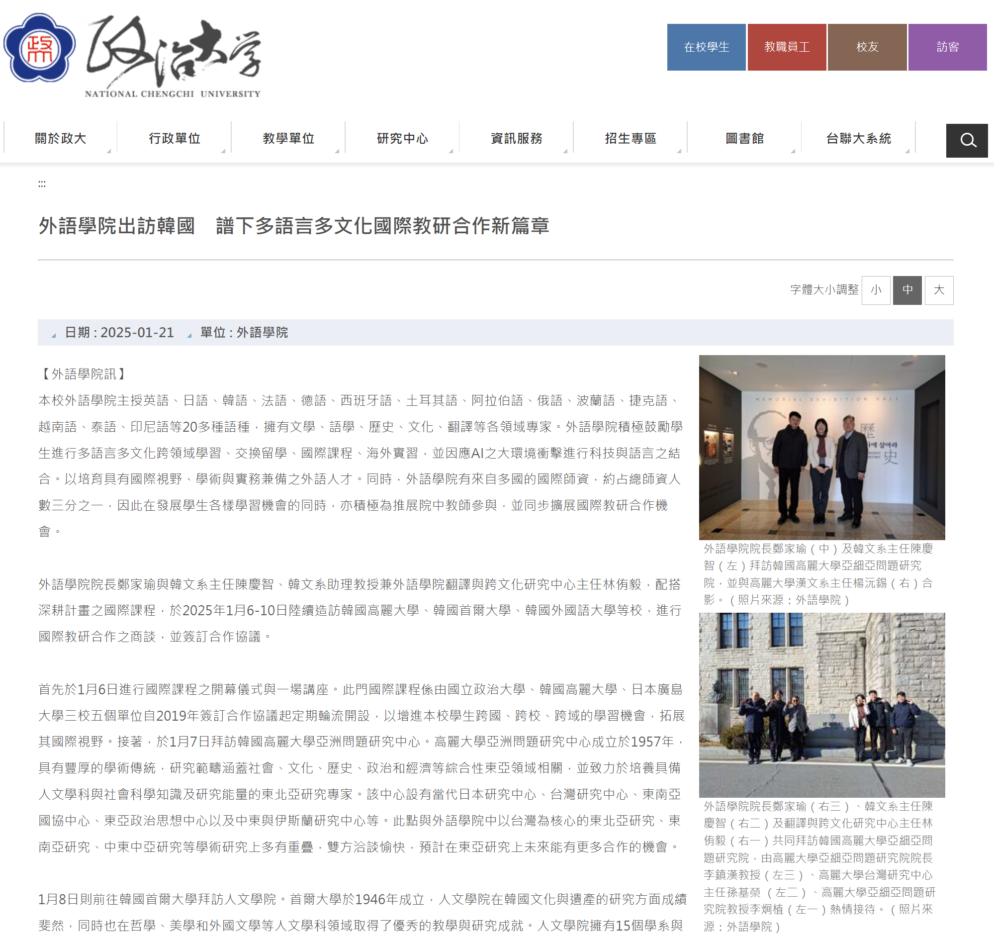 - 대만 국립정치대학 한국어문학과 ⋅ 중국문학과 ⋅ 일본어문학과